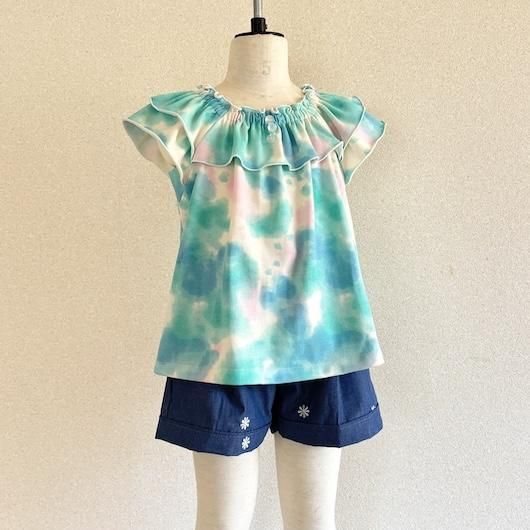 フレア&ギャザーの大きめバタフライスリーブ。80~150サイズ
